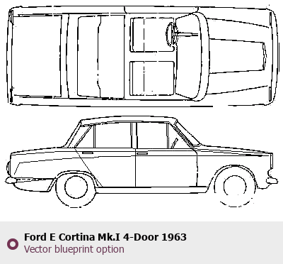 Raster blueprint of the 1963 Ford E Cortina Mk.I 4-Door Tag. This free downloadable image can be used for graphic projects, digital design, and 3D modeling. The file provides accurate exterior proportions of the vehicle. Model year: 1963. Body type: Tag.
