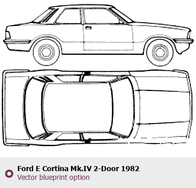 Raster blueprint of the 1982 Ford E Cortina Mk.IV 2-Door Tag. This free downloadable image can be used for graphic projects, digital design, and 3D modeling. The file provides accurate exterior proportions of the vehicle. Model year: 1982. Body type: Tag.