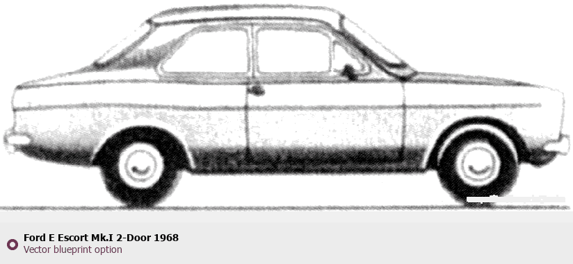 Raster blueprint of the 1968 Ford E Escort Mk.I 2-Door Tag. This free downloadable image can be used for graphic projects, digital design, and 3D modeling. The file provides accurate exterior proportions of the vehicle. Model year: 1968. Body type: Tag.