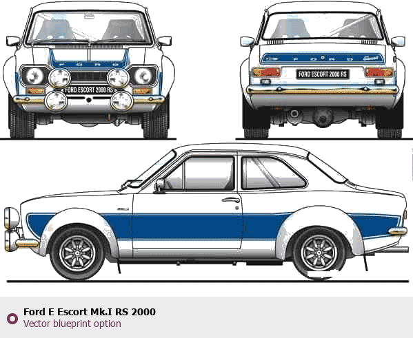 Raster blueprint of the 2000 Ford E Escort Mk.I RS Tag. This free downloadable image can be used for graphic projects, digital design, and 3D modeling. The file provides accurate exterior proportions of the vehicle. Model year: 2000. Body type: Tag.