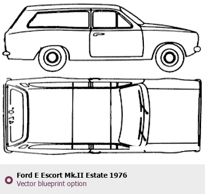 Raster blueprint of the 1976 Ford E Escort Mk.II Estate Wagon. This free downloadable image can be used for graphic projects, digital design, and 3D modeling. The file provides accurate exterior proportions of the vehicle. Model year: 1976. Body type: Wagon.