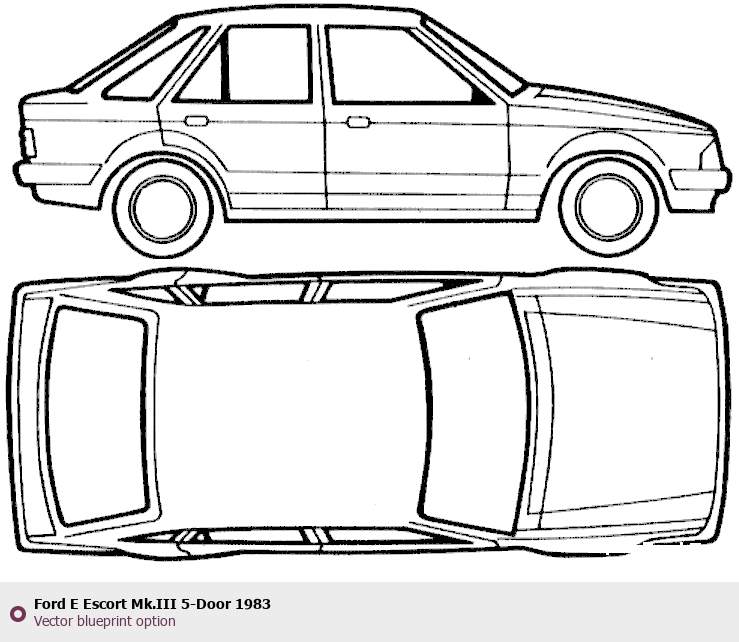 Raster blueprint of the 1983 Ford E Escort Mk.III 5-Door Tag. This free downloadable image can be used for graphic projects, digital design, and 3D modeling. The file provides accurate exterior proportions of the vehicle. Model year: 1983. Body type: Tag.