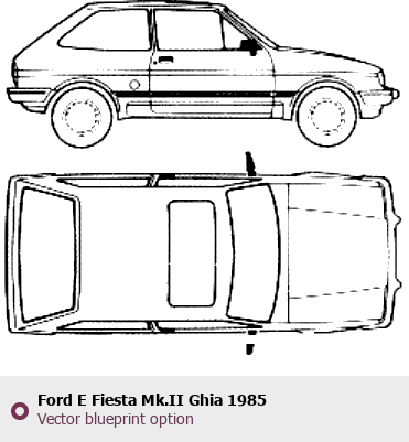 Raster blueprint of the 1985 Ford E Fiesta Mk.II Ghia Tag. This free downloadable image can be used for graphic projects, digital design, and 3D modeling. The file provides accurate exterior proportions of the vehicle. Model year: 1985. Body type: Tag.