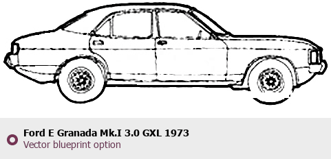 Raster blueprint of the 1973 Ford E Granada Mk.I 3.0 GXL Tag. This free downloadable image can be used for graphic projects, digital design, and 3D modeling. The file provides accurate exterior proportions of the vehicle. Model year: 1973. Body type: Tag.