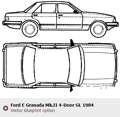 Raster blueprint of the 1984 Ford E Granada Mk.II 4-Door GL Tag. This free downloadable image can be used for graphic projects, digital design, and 3D modeling. The file provides accurate exterior proportions of the vehicle. Model year: 1984. Body type: Tag.