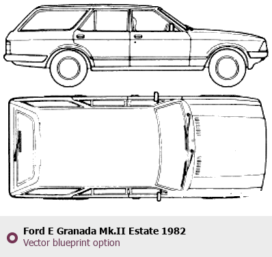 Raster blueprint of the 1982 Ford E Granada Mk.II Estate Wagon. This free downloadable image can be used for graphic projects, digital design, and 3D modeling. The file provides accurate exterior proportions of the vehicle. Model year: 1982. Body type: Wagon.