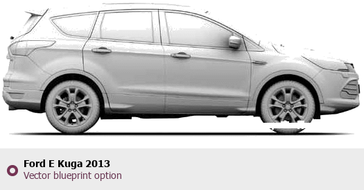 Raster blueprint of the 2013 Ford E Kuga SUV. This free downloadable image can be used for graphic projects, digital design, and 3D modeling. The file provides accurate exterior proportions of the vehicle. Model year: 2013. Body type: SUV.
