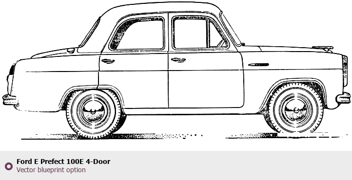 Raster blueprint of the Ford E Prefect 100E 4-Door Sedan. This free downloadable image can be used for graphic projects, digital design, and 3D modeling. The file provides accurate exterior proportions of the vehicle. Body type: Sedan.