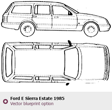 Raster blueprint of the 1985 Ford E Sierra Estate Wagon. This free downloadable image can be used for graphic projects, digital design, and 3D modeling. The file provides accurate exterior proportions of the vehicle. Model year: 1985. Body type: Wagon.