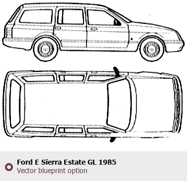 Raster blueprint of the 1985 Ford E Sierra Estate GL Wagon. This free downloadable image can be used for graphic projects, digital design, and 3D modeling. The file provides accurate exterior proportions of the vehicle. Model year: 1985. Body type: Wagon.