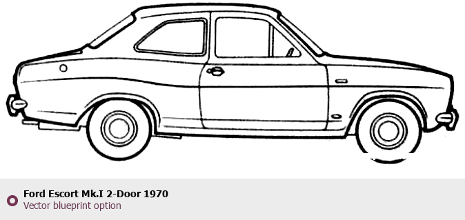 Raster blueprint of the 1970 Ford Escort Mk.I 2-Door Tag. This free downloadable image can be used for graphic projects, digital design, and 3D modeling. The file provides accurate exterior proportions of the vehicle. Model year: 1970. Body type: Tag.