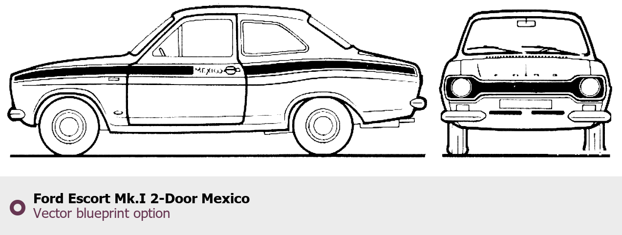 Raster blueprint of the Ford Escort Mk.I 2-Door Mexico Tag. This free downloadable image can be used for graphic projects, digital design, and 3D modeling. The file provides accurate exterior proportions of the vehicle. Body type: Tag.