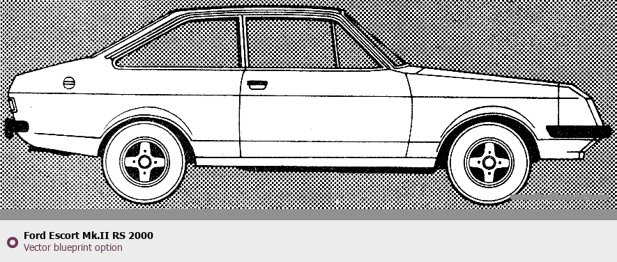 Raster blueprint of the 2000 Ford Escort Mk.II RS Tag. This free downloadable image can be used for graphic projects, digital design, and 3D modeling. The file provides accurate exterior proportions of the vehicle. Model year: 2000. Body type: Tag.