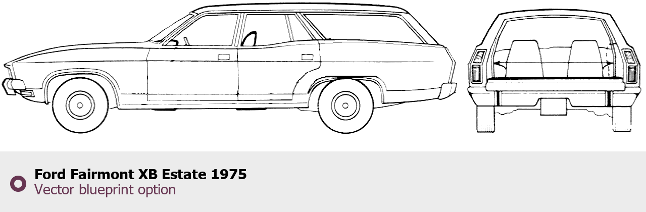Raster blueprint of the 1975 Ford Fairmont XB Estate Wagon. This free downloadable image can be used for graphic projects, digital design, and 3D modeling. The file provides accurate exterior proportions of the vehicle. Model year: 1975. Body type: Wagon.