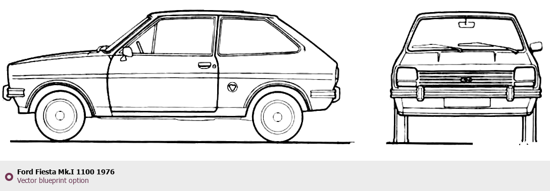 Raster blueprint of the 1976 Ford Fiesta Mk.I 1100 Tag. This free downloadable image can be used for graphic projects, digital design, and 3D modeling. The file provides accurate exterior proportions of the vehicle. Model year: 1976. Body type: Tag.