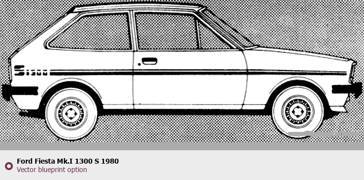 Raster blueprint of the 1980 Ford Fiesta Mk.I 1300 S Tag. This free downloadable image can be used for graphic projects, digital design, and 3D modeling. The file provides accurate exterior proportions of the vehicle. Model year: 1980. Body type: Tag.