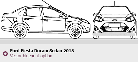 Raster blueprint of the 2013 Ford Fiesta Rocam Sedan Sedan. This free downloadable image can be used for graphic projects, digital design, and 3D modeling. The file provides accurate exterior proportions of the vehicle. Model year: 2013. Body type: Sedan.
