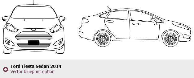 Raster blueprint of the 2014 Ford Fiesta Sedan Sedan. This free downloadable image can be used for graphic projects, digital design, and 3D modeling. The file provides accurate exterior proportions of the vehicle. Model year: 2014. Body type: Sedan.