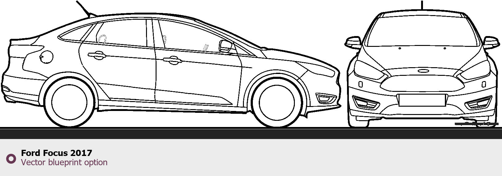 Raster blueprint of the 2017 Ford Focus Tag. This free downloadable image can be used for graphic projects, digital design, and 3D modeling. The file provides accurate exterior proportions of the vehicle. Model year: 2017. Body type: Tag.