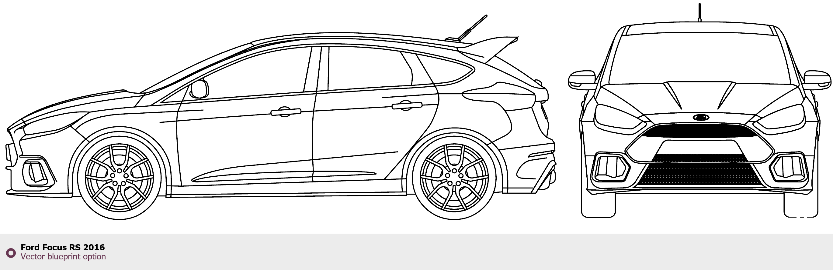 Raster blueprint of the 2016 Ford Focus RS Tag. This free downloadable image can be used for graphic projects, digital design, and 3D modeling. The file provides accurate exterior proportions of the vehicle. Model year: 2016. Body type: Tag.