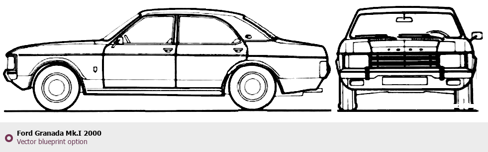 Raster blueprint of the 2000 Ford Granada Mk.I Tag. This free downloadable image can be used for graphic projects, digital design, and 3D modeling. The file provides accurate exterior proportions of the vehicle. Model year: 2000. Body type: Tag.