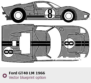 Raster blueprint of the 1966 Ford GT40 LM Coupe. This free downloadable image can be used for graphic projects, digital design, and 3D modeling. The file provides accurate exterior proportions of the vehicle. Model year: 1966. Body type: Coupe.