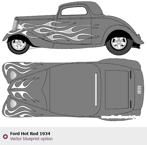 Raster blueprint of the 1934 Ford Hot Rod Tag. This free downloadable image can be used for graphic projects, digital design, and 3D modeling. The file provides accurate exterior proportions of the vehicle. Model year: 1934. Body type: Tag.