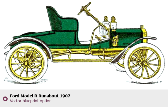 Raster blueprint of the 1907 Ford Model R Runabout Tag. This free downloadable image can be used for graphic projects, digital design, and 3D modeling. The file provides accurate exterior proportions of the vehicle. Model year: 1907. Body type: Tag.