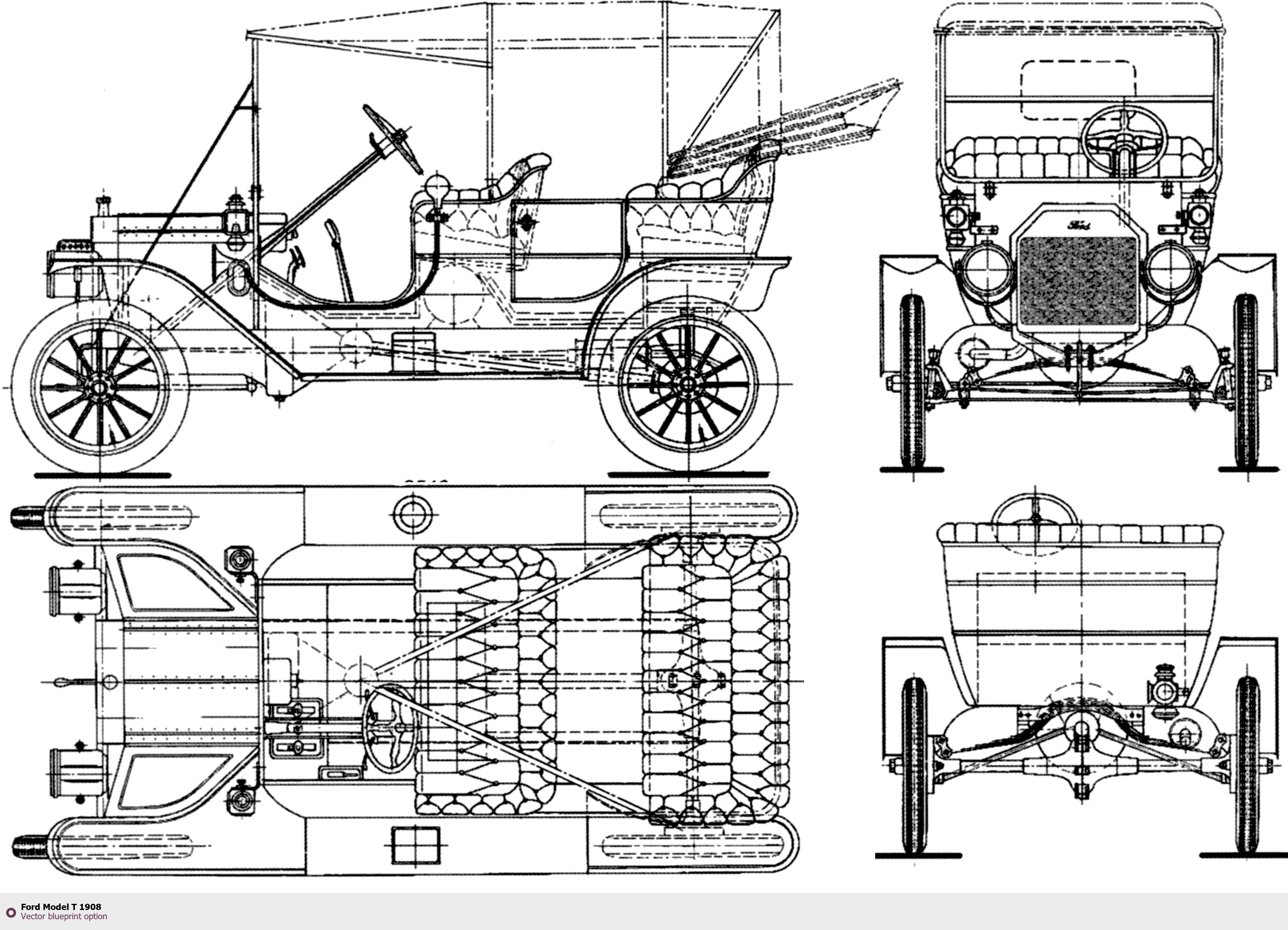 Raster blueprint of the 1908 Ford Model T Tag. This free downloadable image can be used for graphic projects, digital design, and 3D modeling. The file provides accurate exterior proportions of the vehicle. Model year: 1908. Body type: Tag.