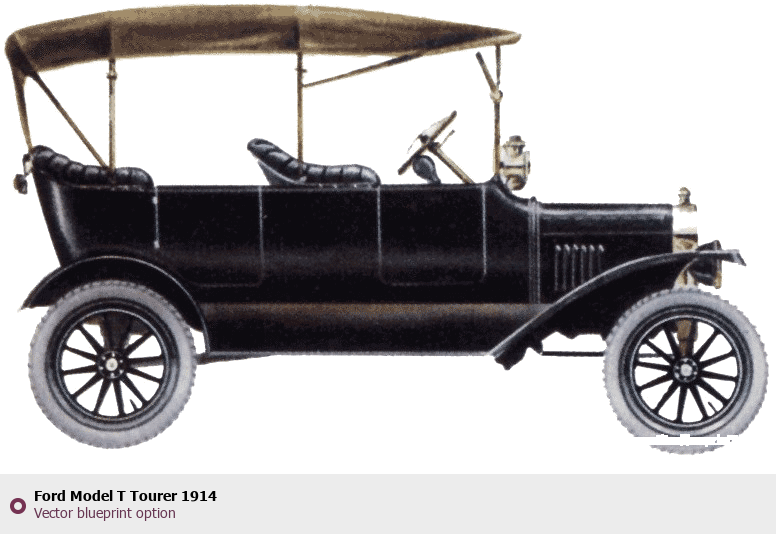 Raster blueprint of the 1914 Ford Model T Tourer Tag. This free downloadable image can be used for graphic projects, digital design, and 3D modeling. The file provides accurate exterior proportions of the vehicle. Model year: 1914. Body type: Tag.