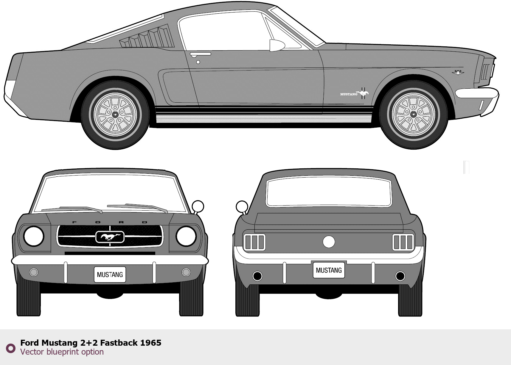 Raster blueprint of the 1965 Ford Mustang 2+2 Fastback Tag. This free downloadable image can be used for graphic projects, digital design, and 3D modeling. The file provides accurate exterior proportions of the vehicle. Model year: 1965. Body type: Tag.