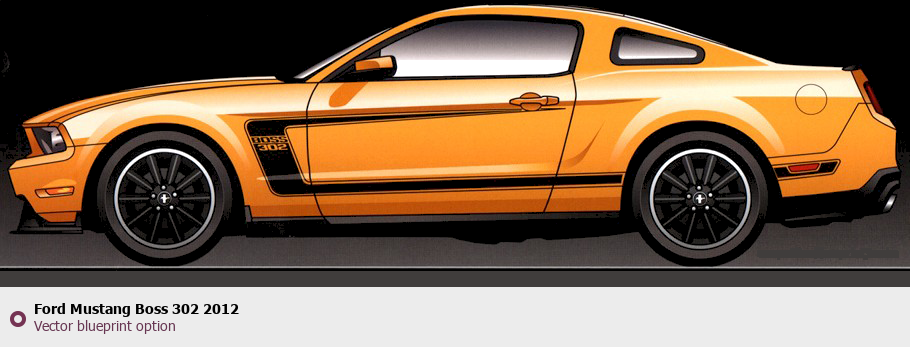 Raster blueprint of the 2012 Ford Mustang Boss 302 Tag. This free downloadable image can be used for graphic projects, digital design, and 3D modeling. The file provides accurate exterior proportions of the vehicle. Model year: 2012. Body type: Tag.