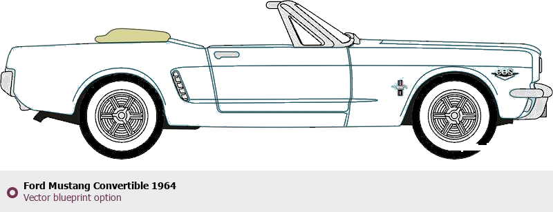 Raster blueprint of the 1964 Ford Mustang Convertible Cabriolet. This free downloadable image can be used for graphic projects, digital design, and 3D modeling. The file provides accurate exterior proportions of the vehicle. Model year: 1964. Body type: Cabriolet.