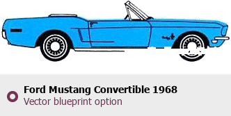 Raster blueprint of the 1968 Ford Mustang Convertible Cabriolet. This free downloadable image can be used for graphic projects, digital design, and 3D modeling. The file provides accurate exterior proportions of the vehicle. Model year: 1968. Body type: Cabriolet.