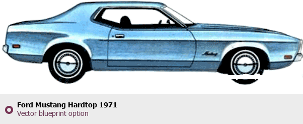 Raster blueprint of the 1971 Ford Mustang Hardtop Tag. This free downloadable image can be used for graphic projects, digital design, and 3D modeling. The file provides accurate exterior proportions of the vehicle. Model year: 1971. Body type: Tag.