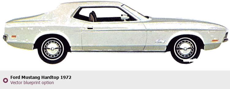 Raster blueprint of the 1972 Ford Mustang Hardtop Tag. This free downloadable image can be used for graphic projects, digital design, and 3D modeling. The file provides accurate exterior proportions of the vehicle. Model year: 1972. Body type: Tag.
