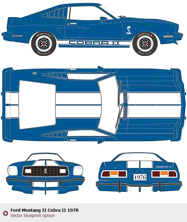 Raster blueprint of the 1978 Ford Mustang II Cobra II Tag. This free downloadable image can be used for graphic projects, digital design, and 3D modeling. The file provides accurate exterior proportions of the vehicle. Model year: 1978. Body type: Tag.