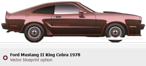 Raster blueprint of the 1978 Ford Mustang II King Cobra Tag. This free downloadable image can be used for graphic projects, digital design, and 3D modeling. The file provides accurate exterior proportions of the vehicle. Model year: 1978. Body type: Tag.