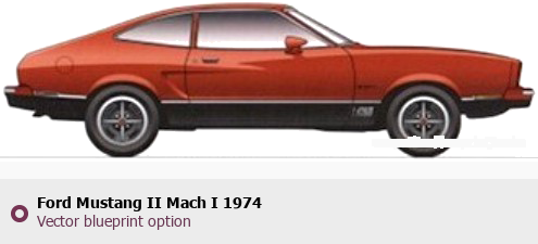 Raster blueprint of the 1974 Ford Mustang II Mach I Tag. This free downloadable image can be used for graphic projects, digital design, and 3D modeling. The file provides accurate exterior proportions of the vehicle. Model year: 1974. Body type: Tag.