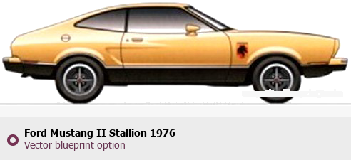 Raster blueprint of the 1976 Ford Mustang II Stallion Tag. This free downloadable image can be used for graphic projects, digital design, and 3D modeling. The file provides accurate exterior proportions of the vehicle. Model year: 1976. Body type: Tag.