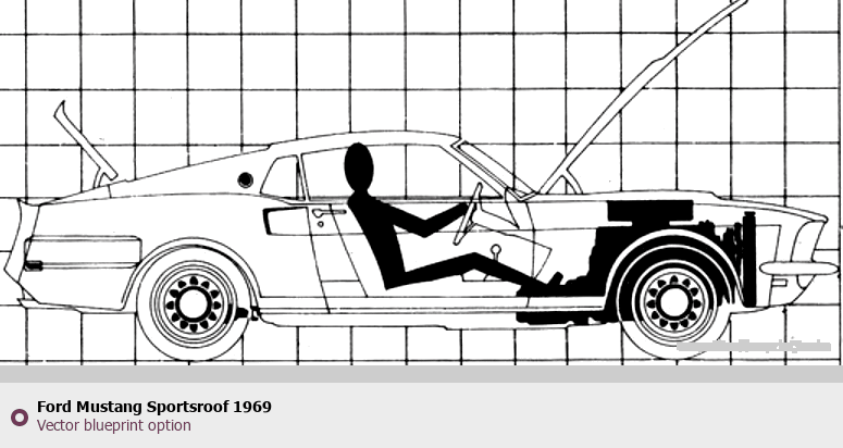 Raster blueprint of the 1969 Ford Mustang Sportsroof Tag. This free downloadable image can be used for graphic projects, digital design, and 3D modeling. The file provides accurate exterior proportions of the vehicle. Model year: 1969. Body type: Tag.