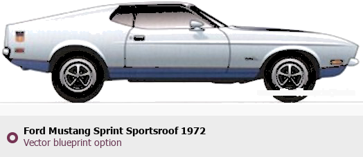 Raster blueprint of the 1972 Ford Mustang Sprint Sportsroof Tag. This free downloadable image can be used for graphic projects, digital design, and 3D modeling. The file provides accurate exterior proportions of the vehicle. Model year: 1972. Body type: Tag.