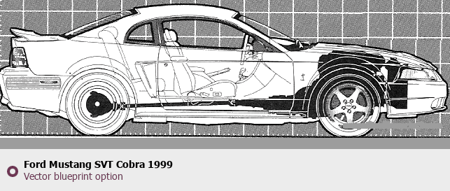 Raster blueprint of the 1999 Ford Mustang SVT Cobra Tag. This free downloadable image can be used for graphic projects, digital design, and 3D modeling. The file provides accurate exterior proportions of the vehicle. Model year: 1999. Body type: Tag.