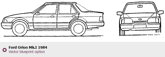 Raster blueprint of the 1984 Ford Orion Mk.I Sedan. This free downloadable image can be used for graphic projects, digital design, and 3D modeling. The file provides accurate exterior proportions of the vehicle. Model year: 1984. Body type: Sedan.