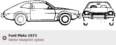 Raster blueprint of the 1973 Ford Pinto Coupe. This free downloadable image can be used for graphic projects, digital design, and 3D modeling. The file provides accurate exterior proportions of the vehicle. Model year: 1973. Body type: Coupe.