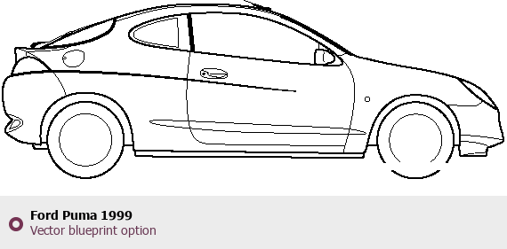 Raster blueprint of the 1999 Ford Puma Coupe. This free downloadable image can be used for graphic projects, digital design, and 3D modeling. The file provides accurate exterior proportions of the vehicle. Model year: 1999. Body type: Coupe.
