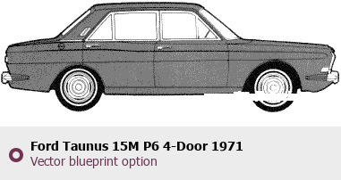 Raster blueprint of the 1971 Ford Taunus 15M P6 4-Door Tag. This free downloadable image can be used for graphic projects, digital design, and 3D modeling. The file provides accurate exterior proportions of the vehicle. Model year: 1971. Body type: Tag.