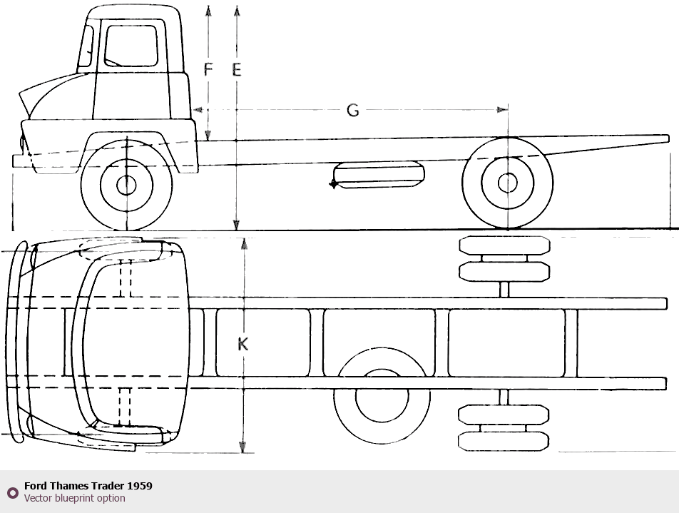 Raster blueprint of the 1959 Ford Thames Trader Tag. This free downloadable image can be used for graphic projects, digital design, and 3D modeling. The file provides accurate exterior proportions of the vehicle. Model year: 1959. Body type: Tag.