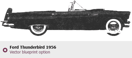 Raster blueprint of the 1956 Ford Thunderbird Tag. This free downloadable image can be used for graphic projects, digital design, and 3D modeling. The file provides accurate exterior proportions of the vehicle. Model year: 1956. Body type: Tag.