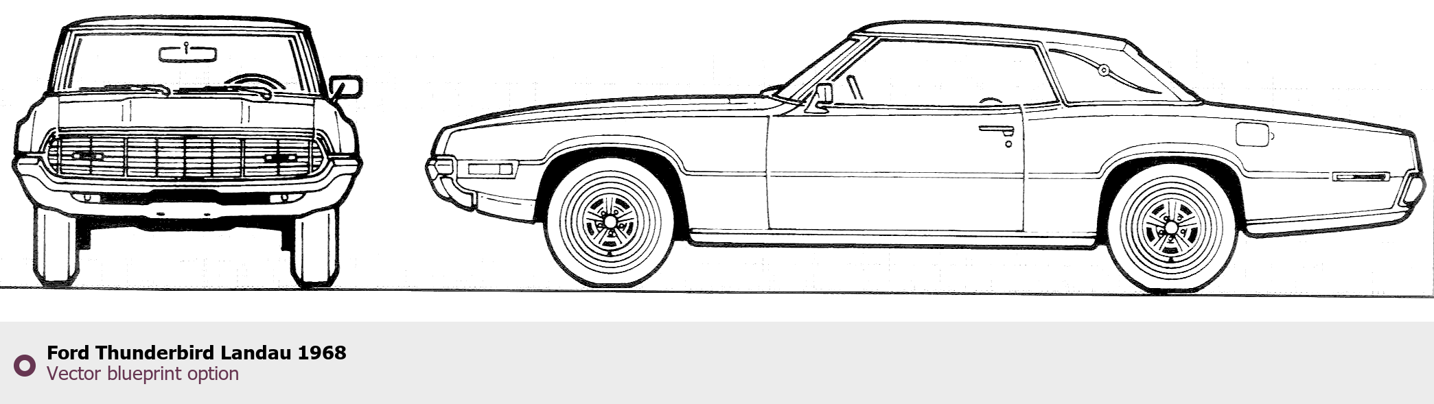 Raster blueprint of the 1968 Ford Thunderbird Landau Tag. This free downloadable image can be used for graphic projects, digital design, and 3D modeling. The file provides accurate exterior proportions of the vehicle. Model year: 1968. Body type: Tag.